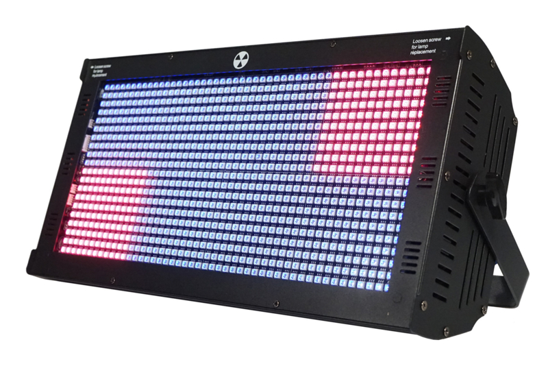Pixel RGB Strobe, 960 leds SMD, 8 Pixel Sections, Beam Angle: 120 degrees,Strobe frequency: 1~30HZ, 3 DMX modes CH03, CH09, and CH24 channels, powercon input/output, IP20, 6 kg.